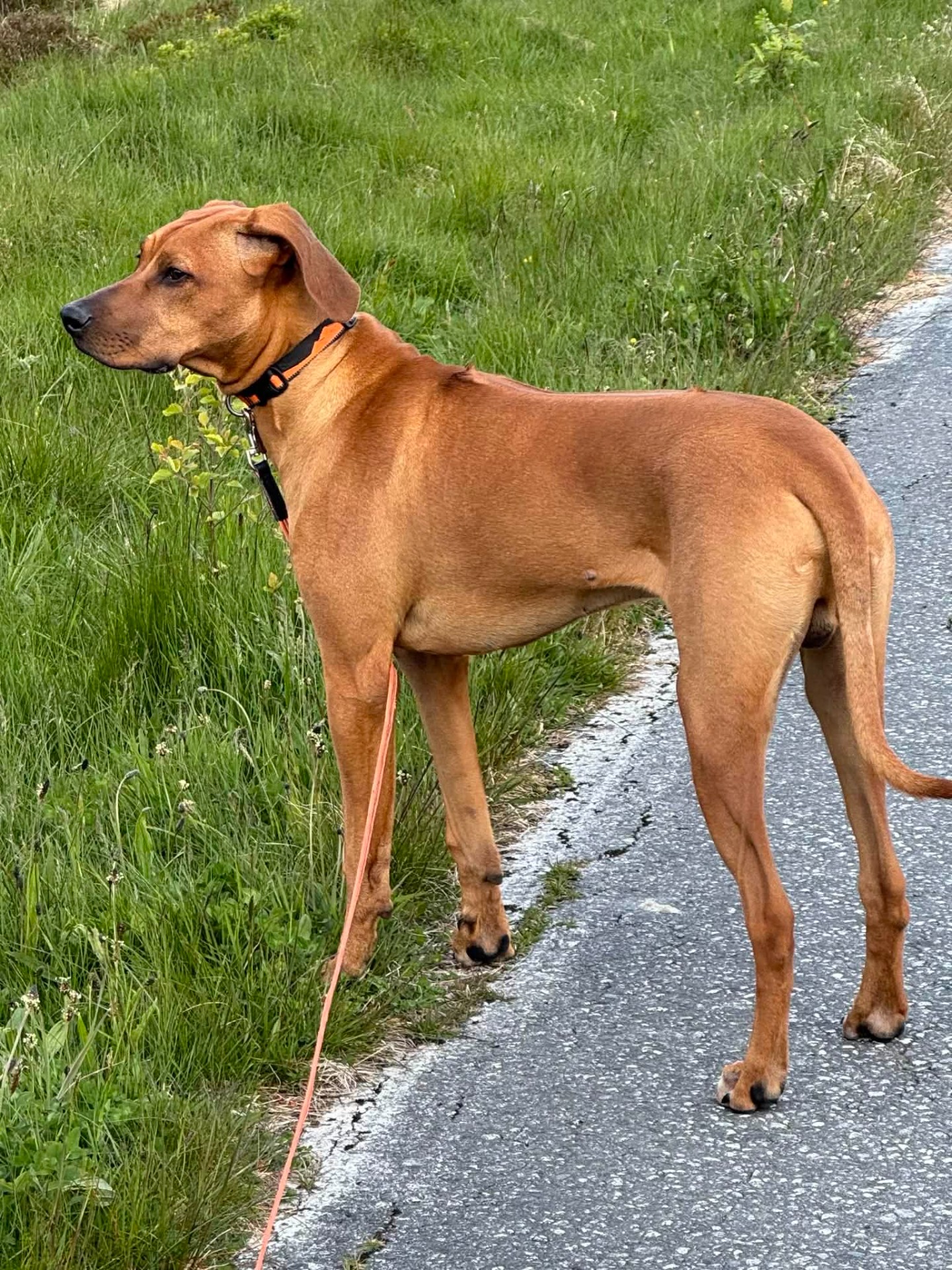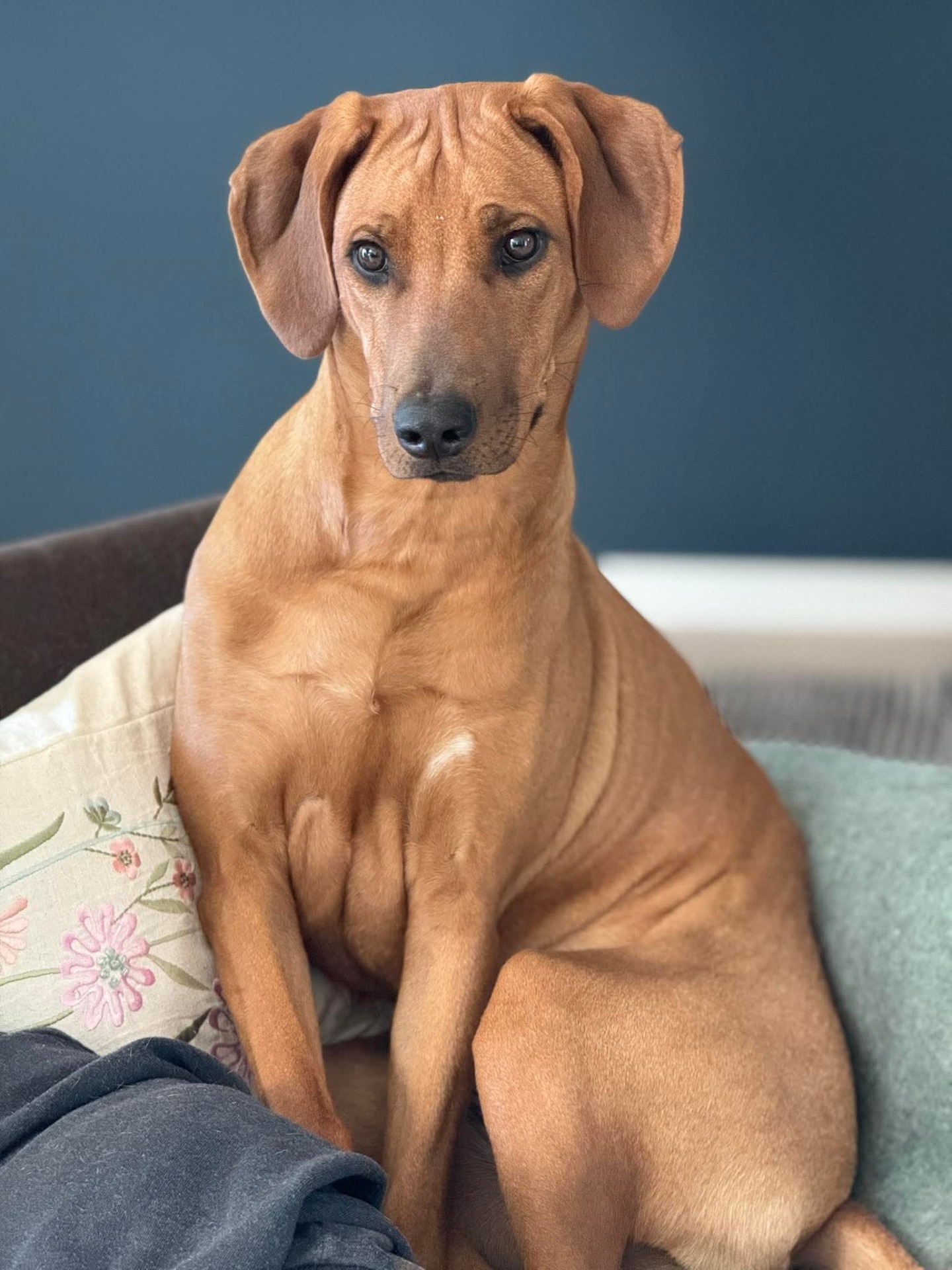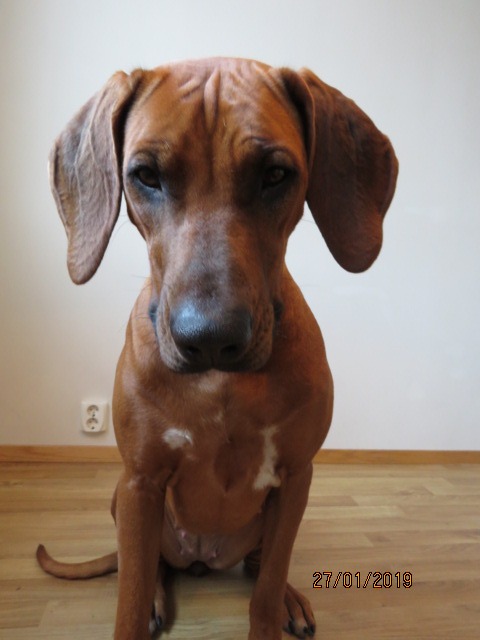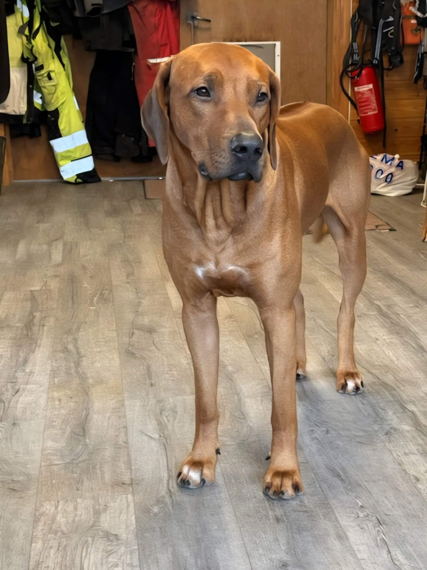 Bor sammen med Linn, Paul-scott og sin Ridgeback søster Taylor i Bergen.