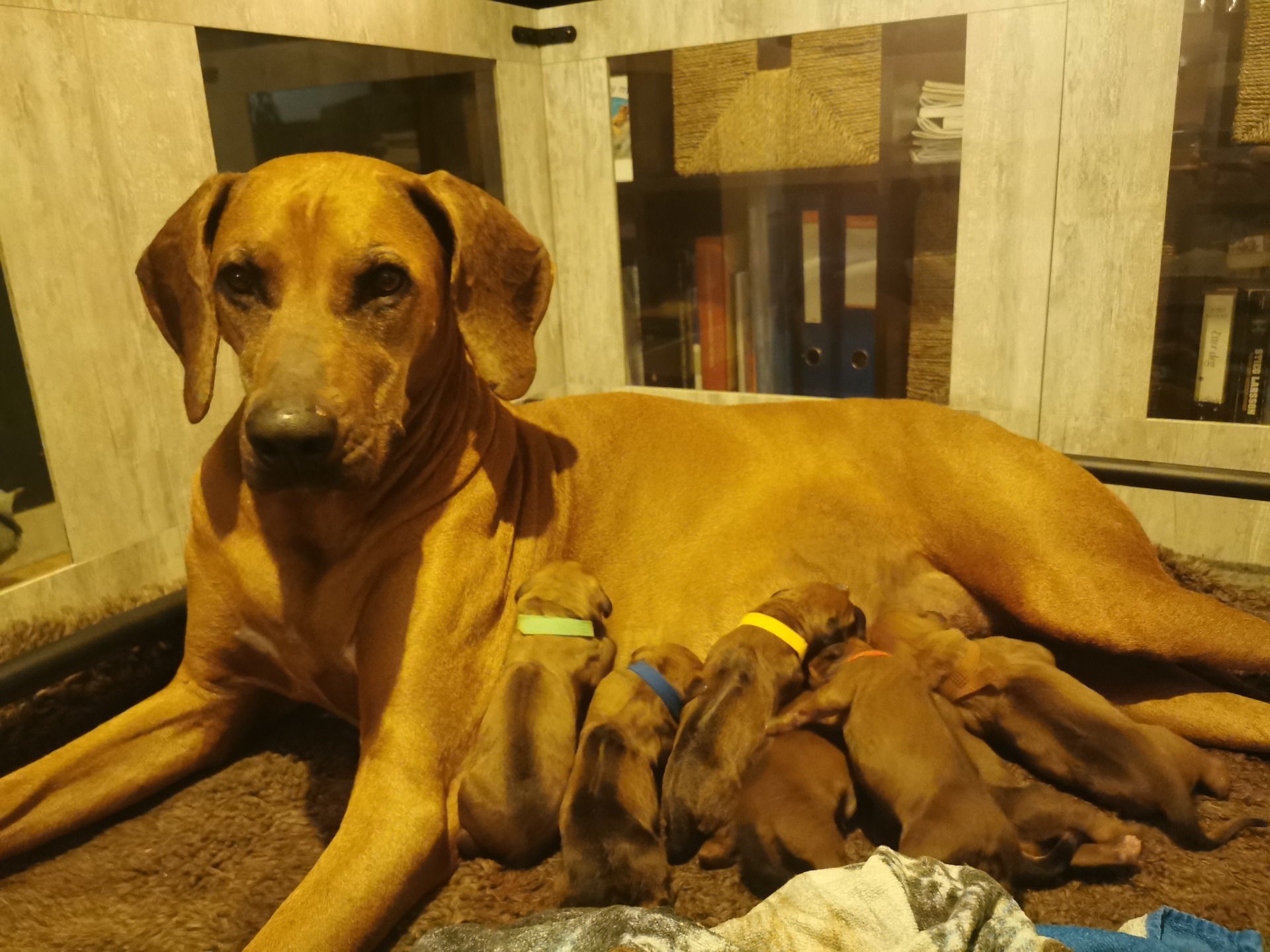 Sarafina hadde en naturlig fødsel og i løpet av 7 timer hadde 9 små kommet til verden, 5 tisper og 4 hanner.