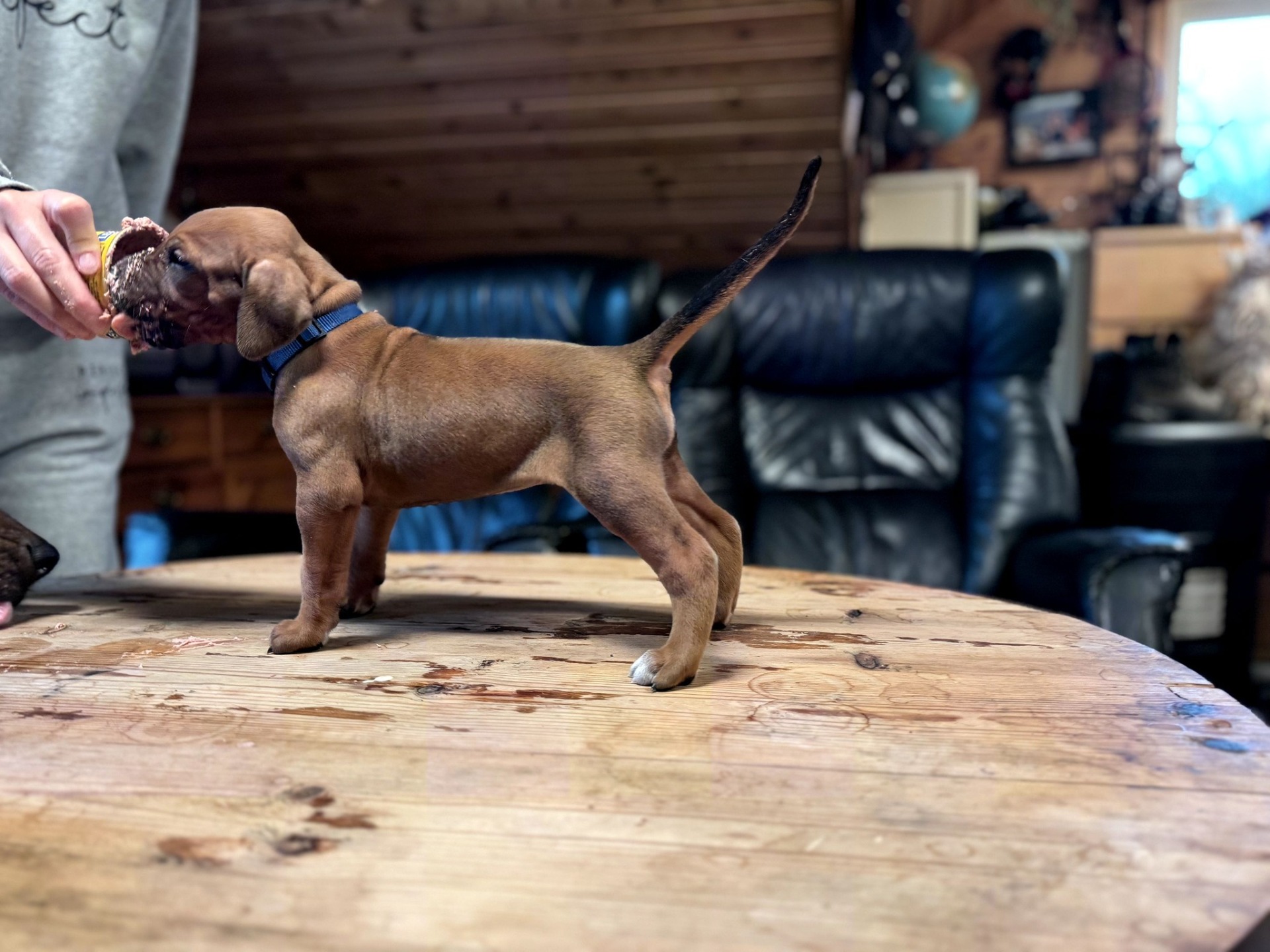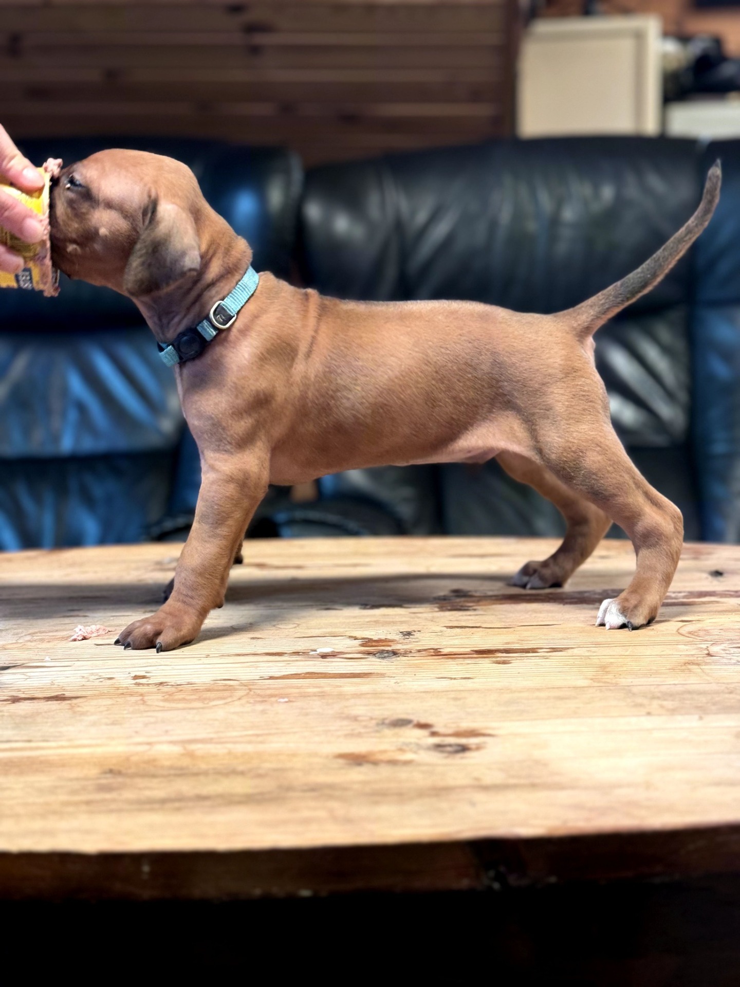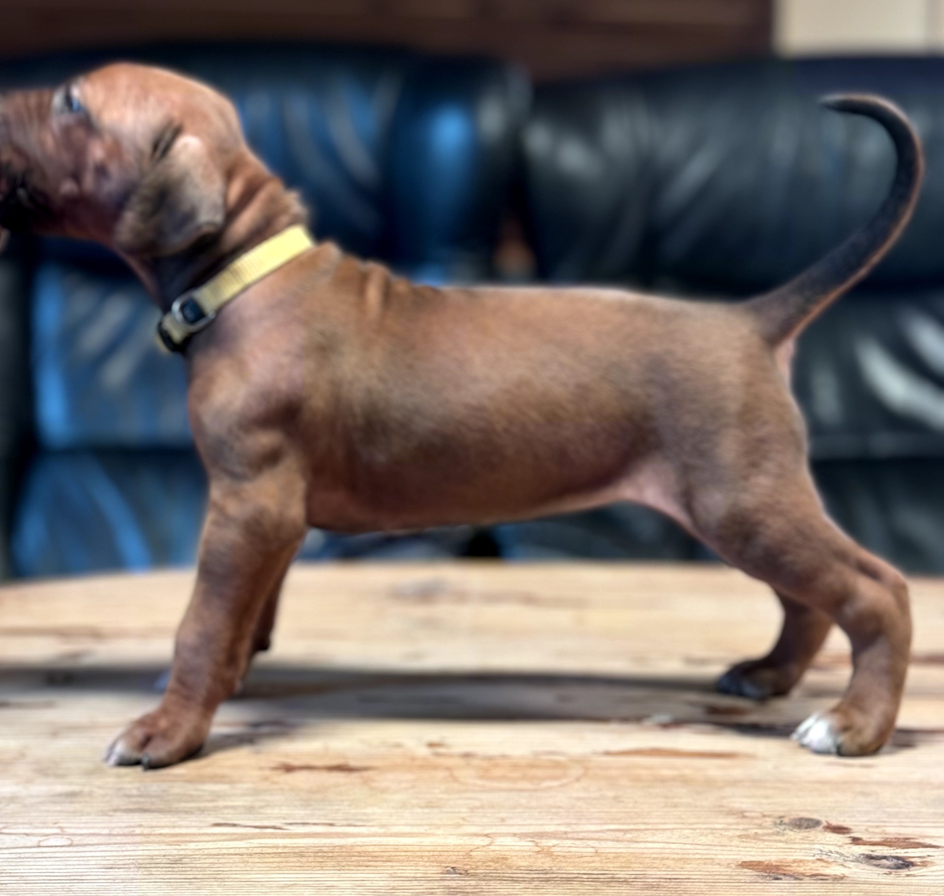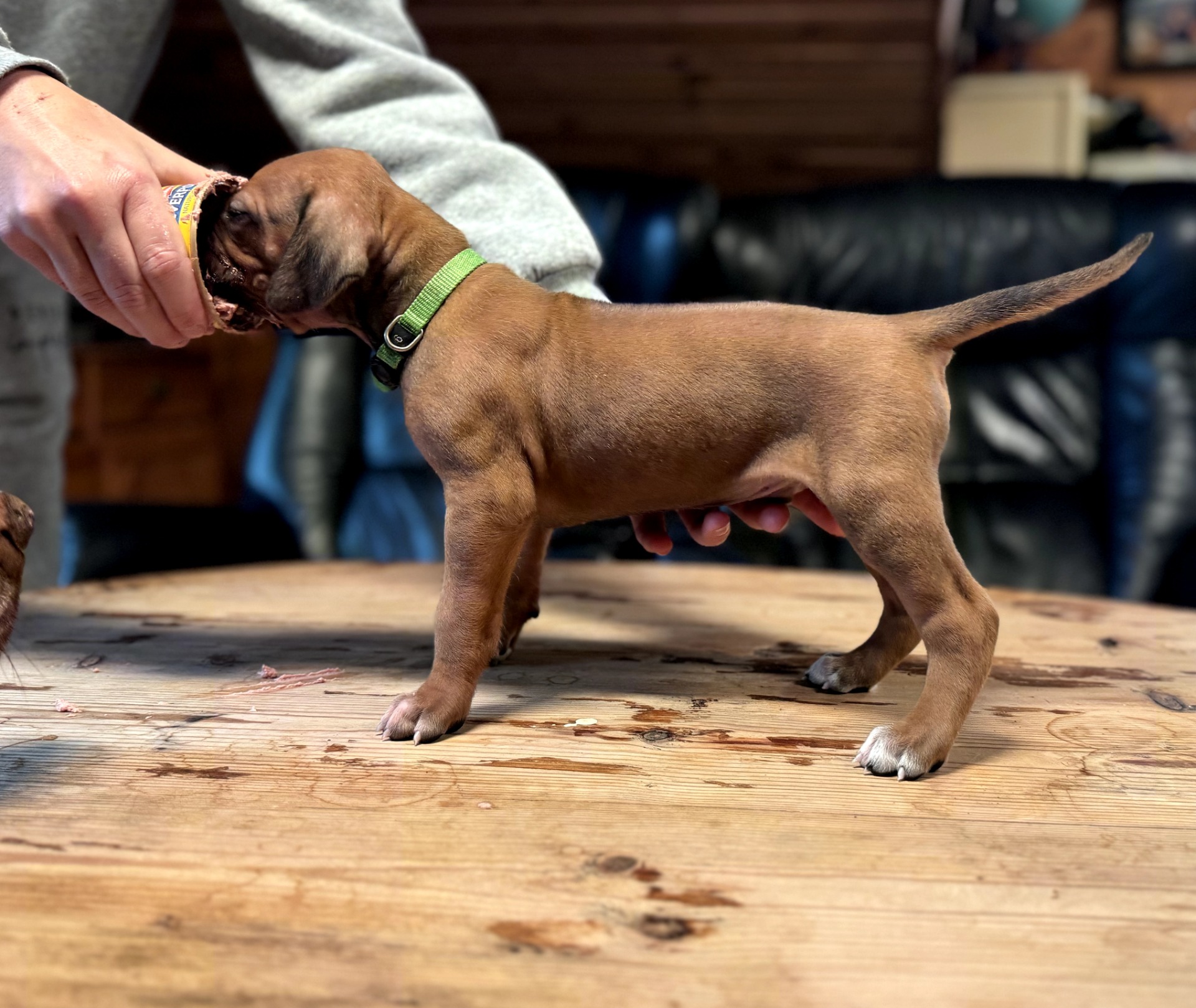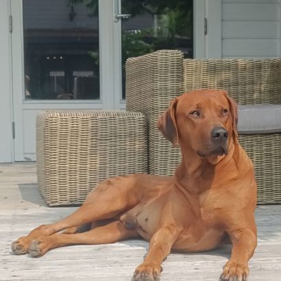 Prado har vært en herlig og tillitsfull gutt fra første dag. Han er rolig og behersket inne, og elsker å slappe av i sofaen eller sengen. I trening er Prado svært mat motivert og jobber med stor glede og utholdenhet. Han elsker en god dra kamp, og det å samarbeide om oppgaver ser ut til å gi ham ekte treningsglede. Som første gangs eier av RR har vi hatt stor glede av oppfølgning av Hundesentere i Ålesund, spesielt miljø trening som har vært uvurderlige for å bygge trygghet og impulskontroll hos denne sosiale og tillitsfulle gutten. Det han elsker aller mest er å løpe og leke på stranda - kanskje han husker løpeturene med søsken og mor fra Stavanger. Han har utviklet seg til bli en harmonisk, kontaktsøkende og glad RR med et tydelig bånd til oss.